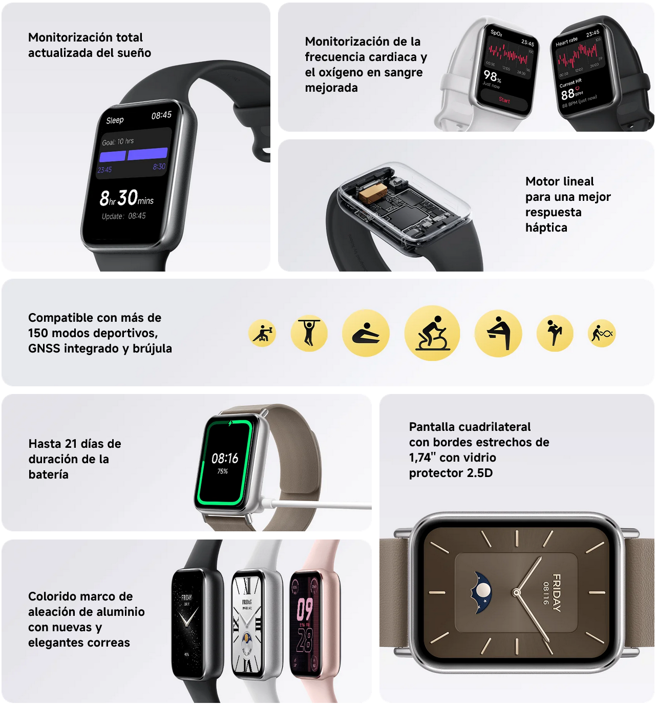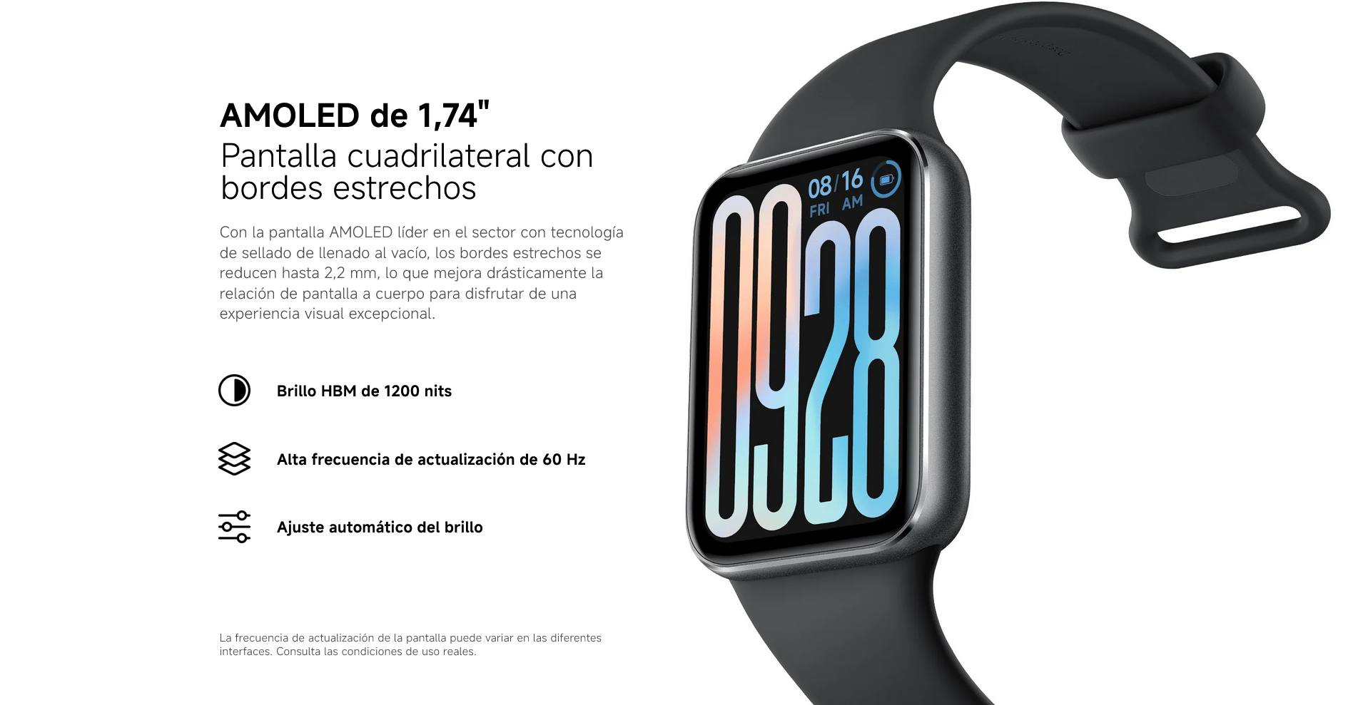 - Pantalla AMOLED 1.74"