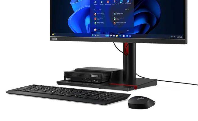 ¿Estás buscando un ordenador de sobremesa elegante que encaje en cualquier sitio? El ordenador ThinkCentre M70q Gen 5 Tiny se puede montar fácilmente en la parte trasera de un monitor, bajo un escritorio o incluso esconderse en una estantería. Además, puedes colocarlo en horizontal o vertical, lo que más te convenga. Es más, admite hasta tres pantallas para cuando necesites ver lo que está pasando.