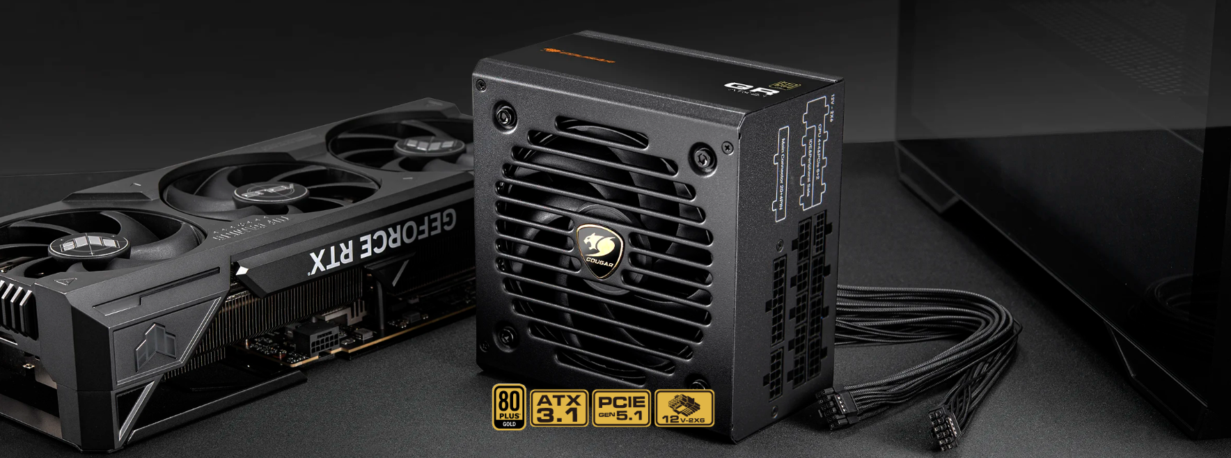 Diseñada para soportar sistemas de última generación, la serie COUGAR GR cumple con el estándar ATX 3.1. Con un diseño nativo 12V-2X6, proporciona alimentación a las tarjetas gráficas de última generación a través de un único cable de 12+4 pines. Con calificación de eficiencia 80 PLUS Gold, ofrece estabilidad, durabilidad y fiabilidad de alta calidad.