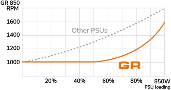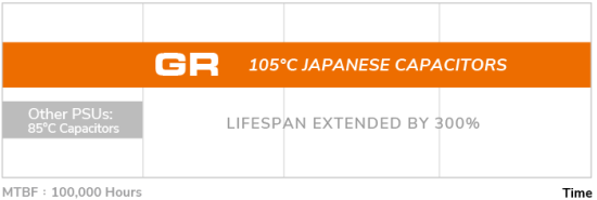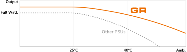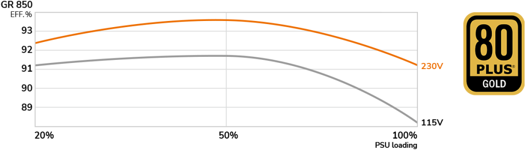 La serie GR cuenta con un diseño altamente eficiente que supera el estándar 80 PLUS Gold, con el fin de reducir el consumo de electricidad.