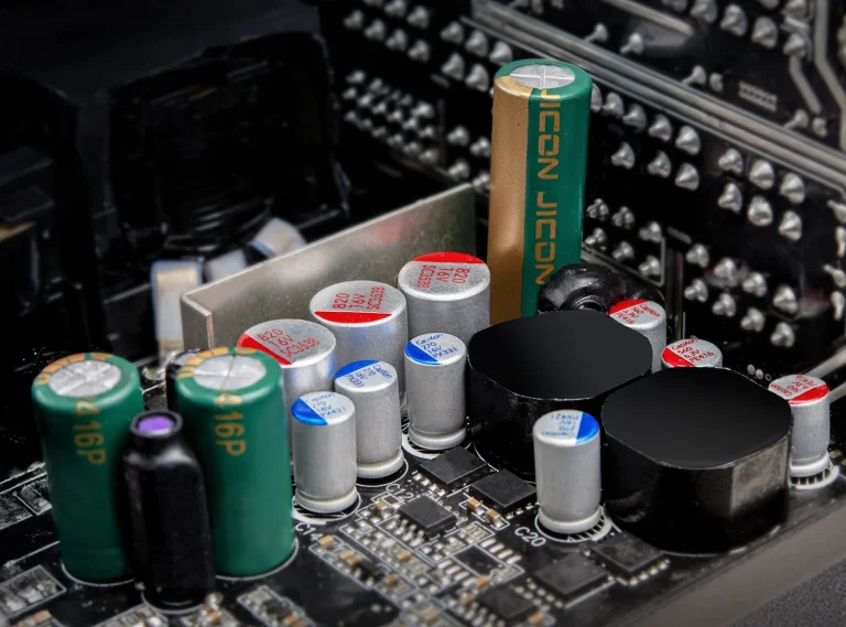 Condensadores japoneses de alta durabilidad y consistentemente fiables, de 105°C, para la alimentación principal.