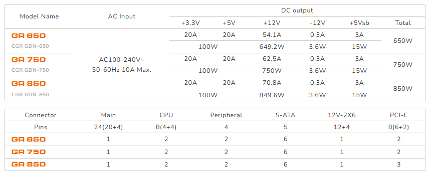 - El diseño de GR LLC, DC-DC y Tri-Sense (3,3V, 5V y 12V) ha sido creado para proporcionar salidas de alta calidad, con una regulación de voltaje extremadamente ajustada del 5% para ofrecer un funcionamiento estable.
