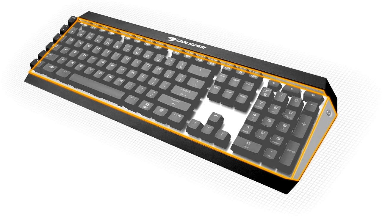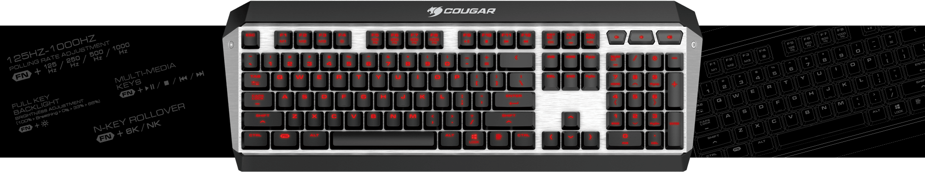 El diseño del COUGAR ATTACK X3 satisface tres requisitos clave para los jugadores. Primero, es un diseño elegante que ofrece, sin añadidos extravagantes, la disposición de teclado estándar y algunas funciones adicionales muy convenientes. No hay teclas especiales en lugares inconvenientes que se interpongan en tu camino. Segundo, su diseño incluye una fuerte estructura de aluminio cepillado que proporciona una mayor durabilidad y sensación de calidad. Esta estructura, inspirada en diseños militares, es una de las características más únicas de ATTACK X3. Por último, el teclado viene equipado con potentes luces rojas que te permitirán jugar en cualquier entorno.
