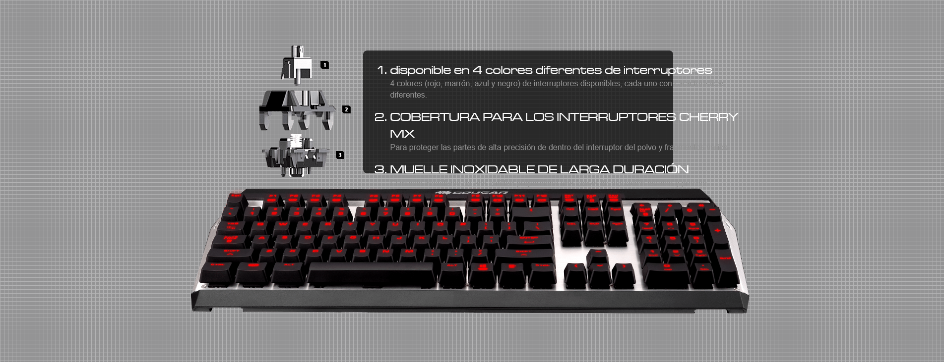 El COUGAR ATTACK X3 es el sueño de los jugadores profesionales hecho realidad. Interruptores Cherry MX, funcionalidad totalmente configurable (incluyendo macros), una potente retroiluminación roja y un diseño de aluminio duradero y visualmente impresionante. Sin añadidos superfluos, este teclado trae exactamente lo que los jugadores necesitan.