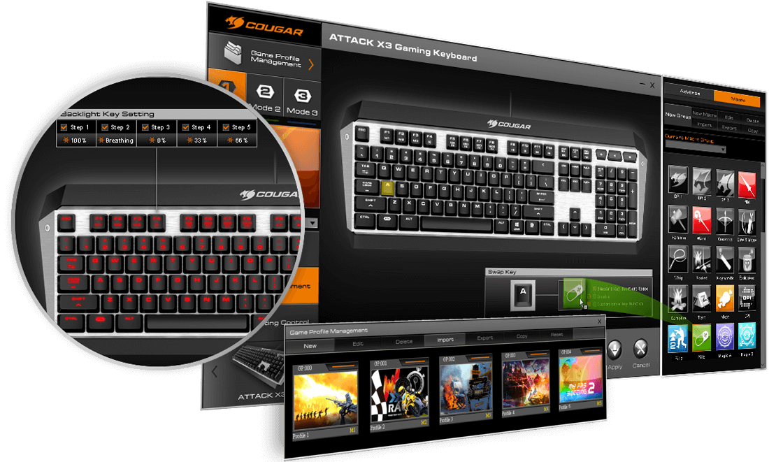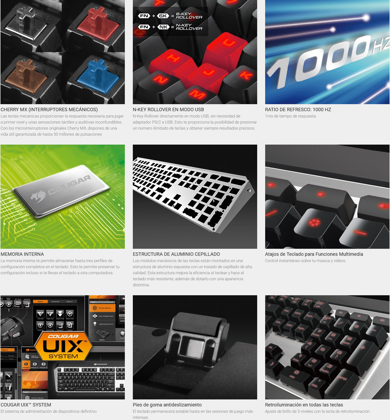 COUGAR ATTACK X3 es un teclado mecánico totalmente NKRO que garantiza que tus comandos se transmiten precisa y completamente a la computadora. La ratio de refresco de 1000 Hz y el tiempo de respuesta de 1ms suponen un alto nivel de desempeño en lo que se refiere a comandos y funciones. En el juego competitivo una diferencia en tiempo de reacción puede decidir una situación de vida o muerte.