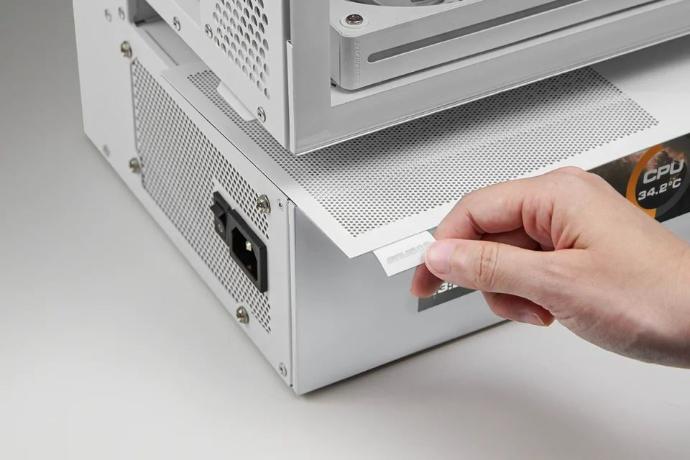 El módulo frontal 3 en 1 —que fusiona el filtro de polvo, dos ventiladores ARGB PWM de 160 mm preinstalados y el panel de malla en una sola unidad preensamblada— te permite realizar el mantenimiento en un solo paso fluido.