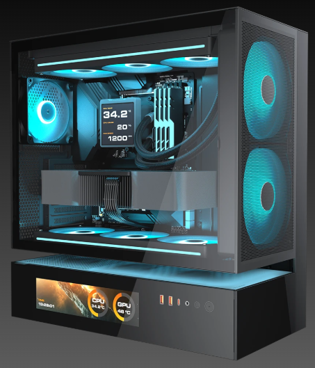 Deja que tu montaje empiece con buen pie: dos ventiladores ARGB PWM de 160 mm están preinstalados e integrados en el módulo frontal 3-en-1, ahorrándote tiempo de montaje y proporcionando una refrigeración óptima y lista para usar.