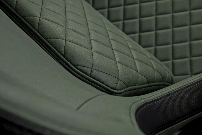 Tapizado exclusivamente en un tejido similar al cuero, el Defensor S ofrece un acabado suave y táctil que equilibra durabilidad con un atractivo premium. Este material avanzado es transpirable, resiste el desgaste y se siente orgánico y flexible al tacto.