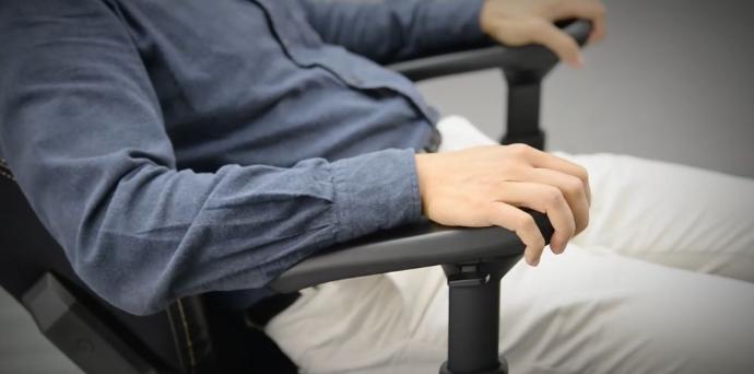 Los reposabrazos hiperrotan en un rango de 225°. Esto favorece posiciones de reposo más ergonómicas y cómodas para los brazos en juegos móviles o cuando la silla está en modo reclinable.