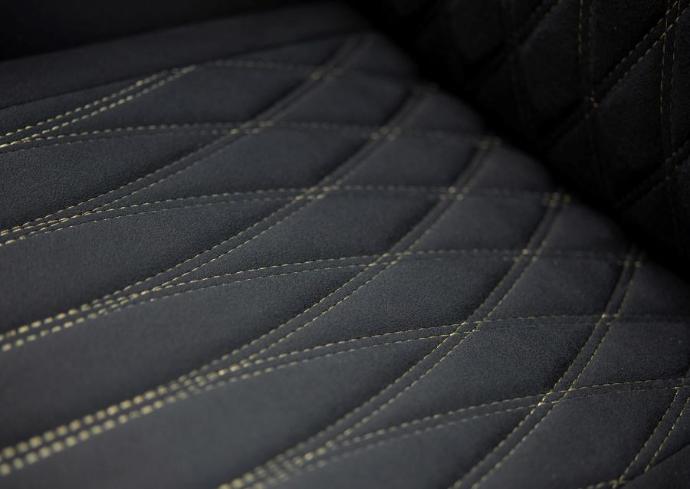 Una correa de sujeción discretamente oculta mantiene la almohada lumbar en su lugar sin interferir con la estética de líneas limpias; el respaldo y los bordes del asiento en cuero sintético texturizado añaden un toque de sofisticación y elegancia discreta.