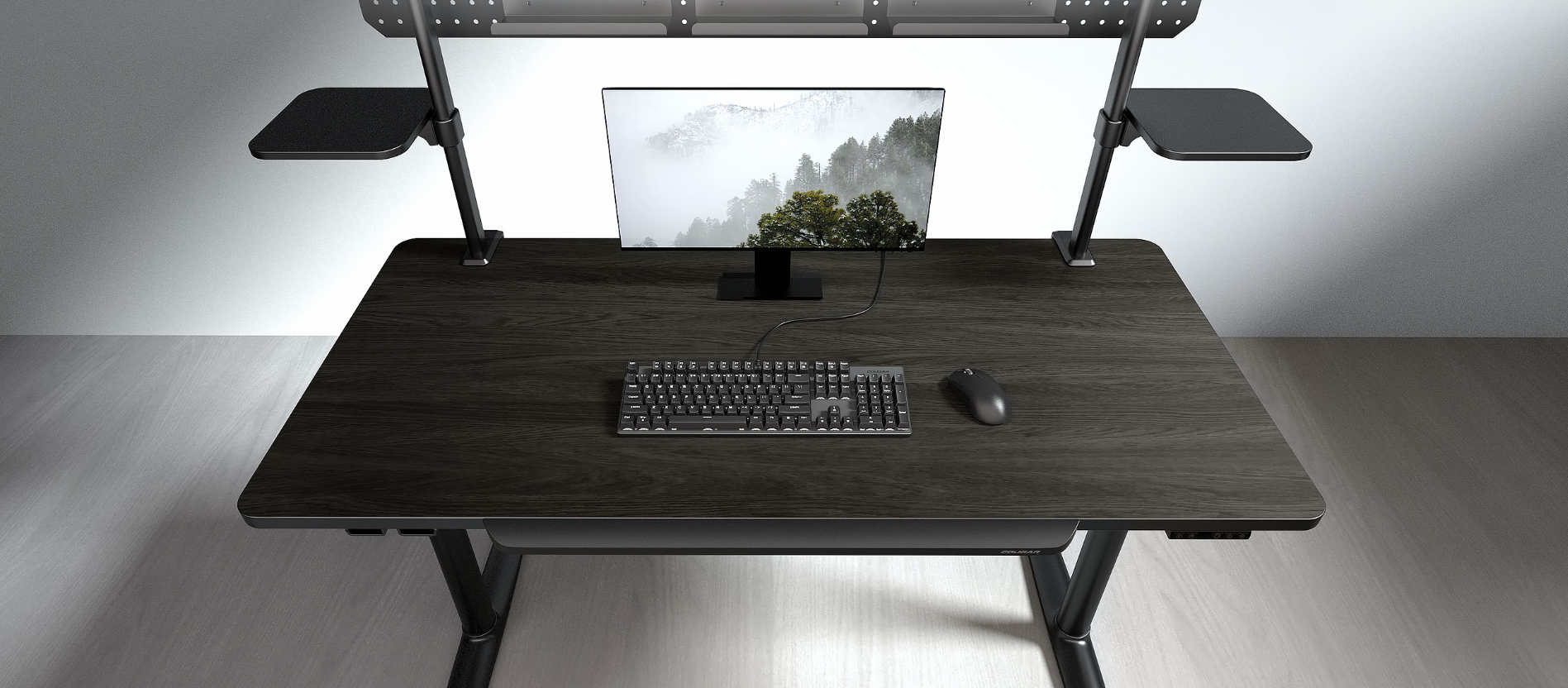 - Los motores eléctricos duales le permiten ajustar la altura de manera suave y silenciosa con dos ajustes preestablecidos de memoria.