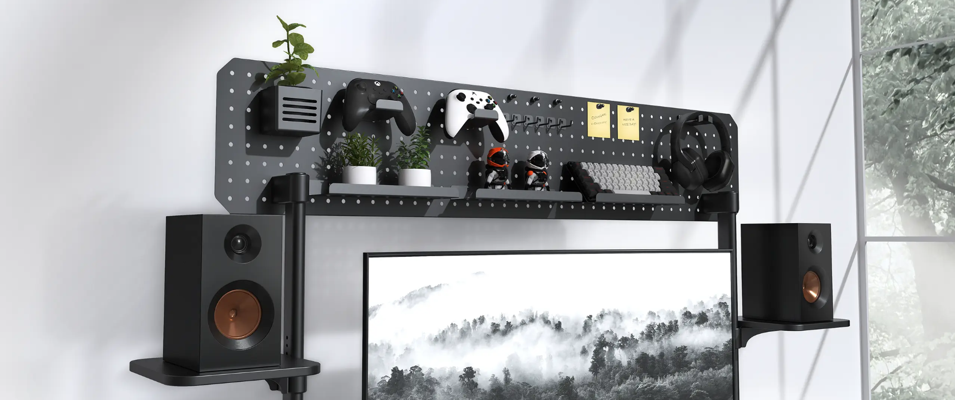 - El módulo de tablero perforado versátil maximiza el espacio vertical para utilidad y exhibición.