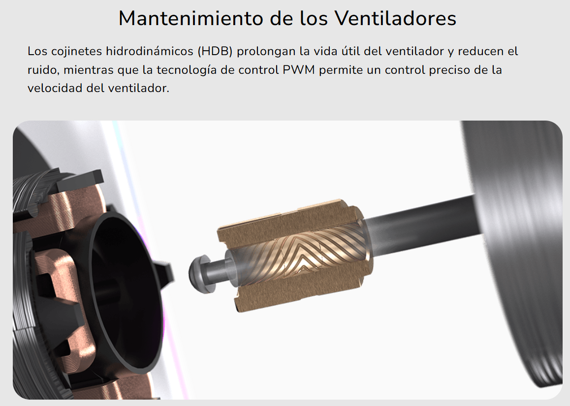 - Voltaje 12 VCC (ventilador) / 5 VCC (LED)