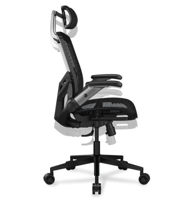 Los reposabrazos plegables 2D ofrecen soporte para varias posiciones de los brazos, mientras que el reposacabezas se ajusta para una comodidad personalizada.