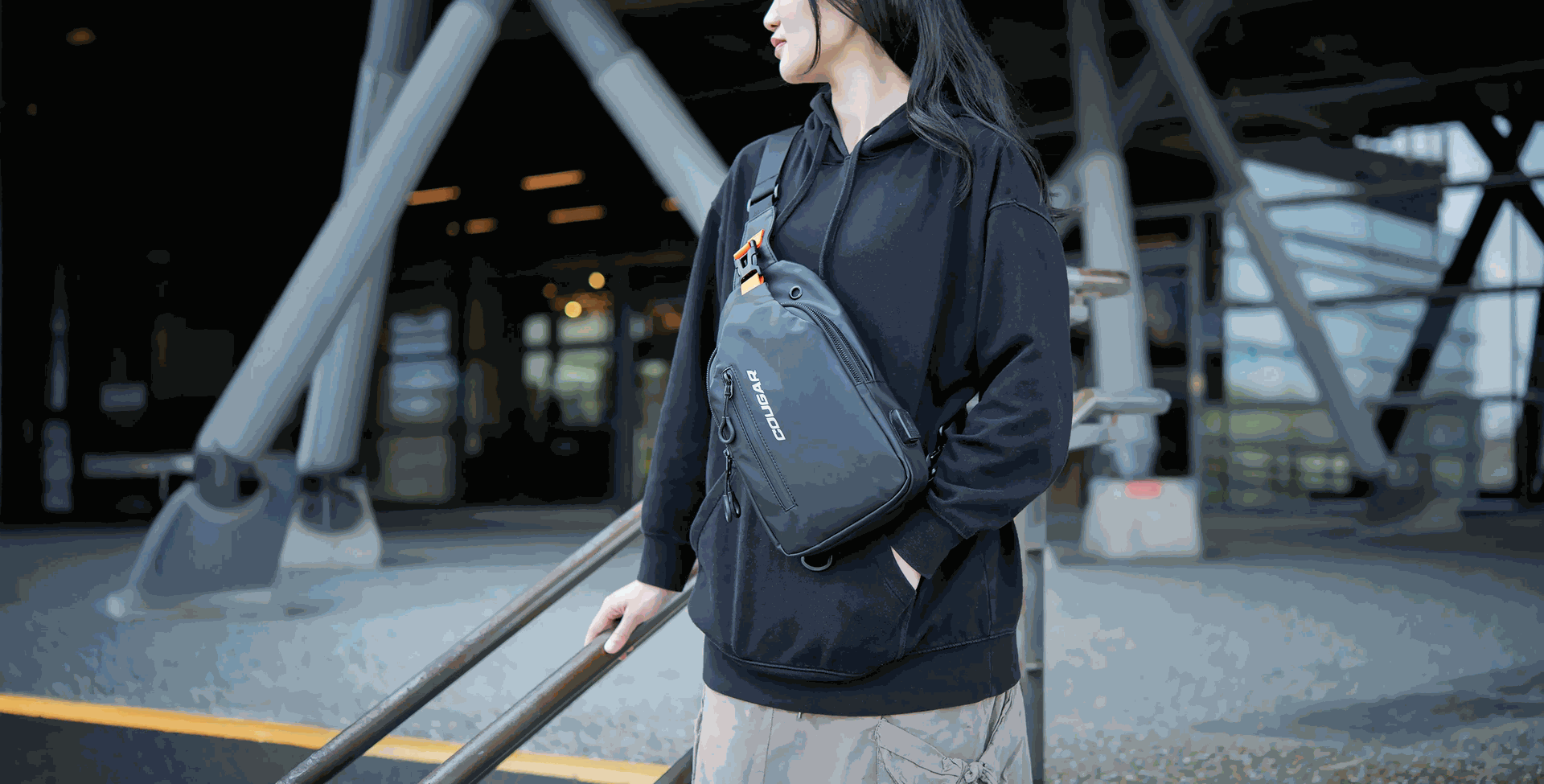 - Una correa de hombro ajustable en ambos extremos proporciona un ajuste ambidiestro personalizado.