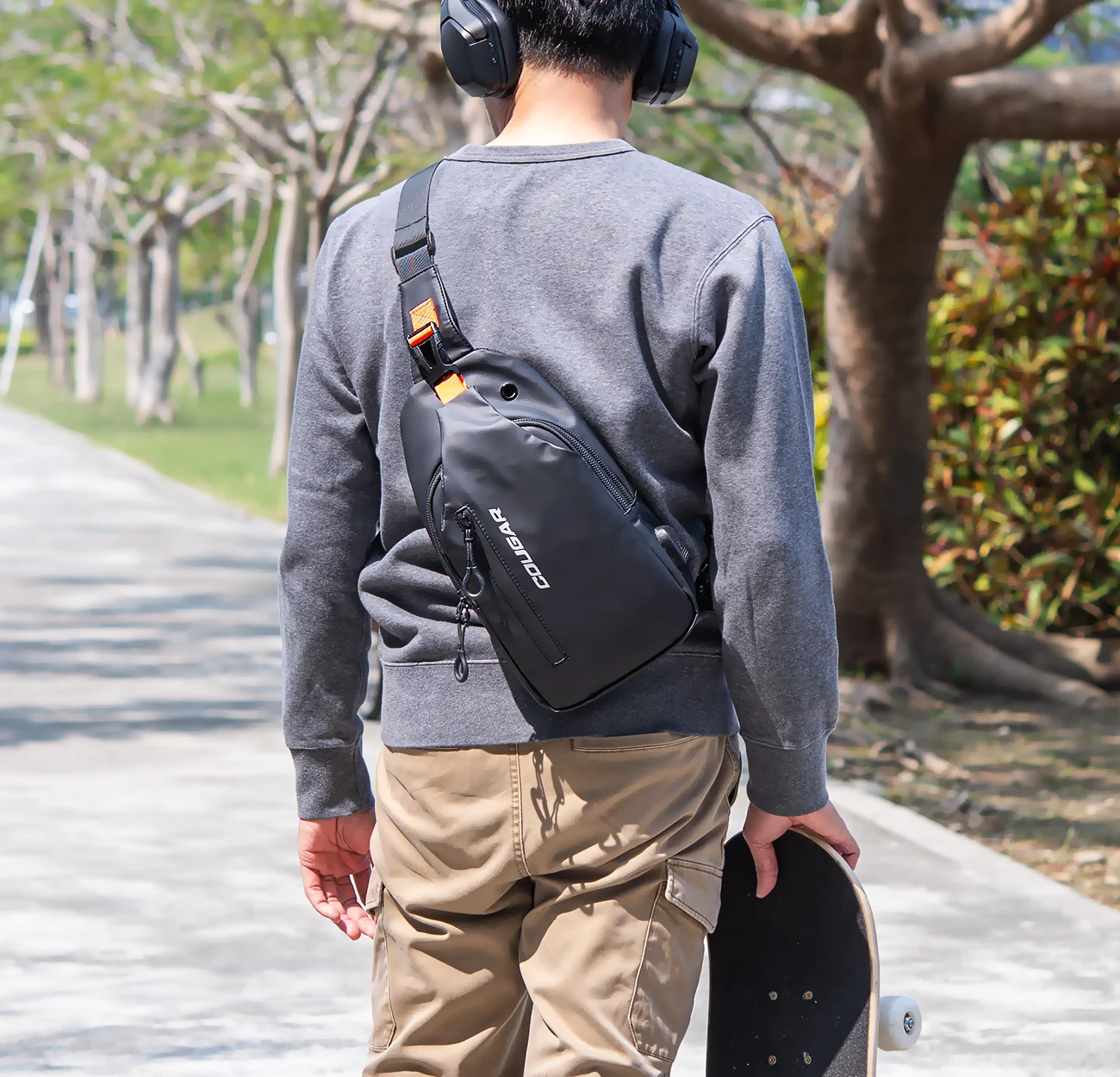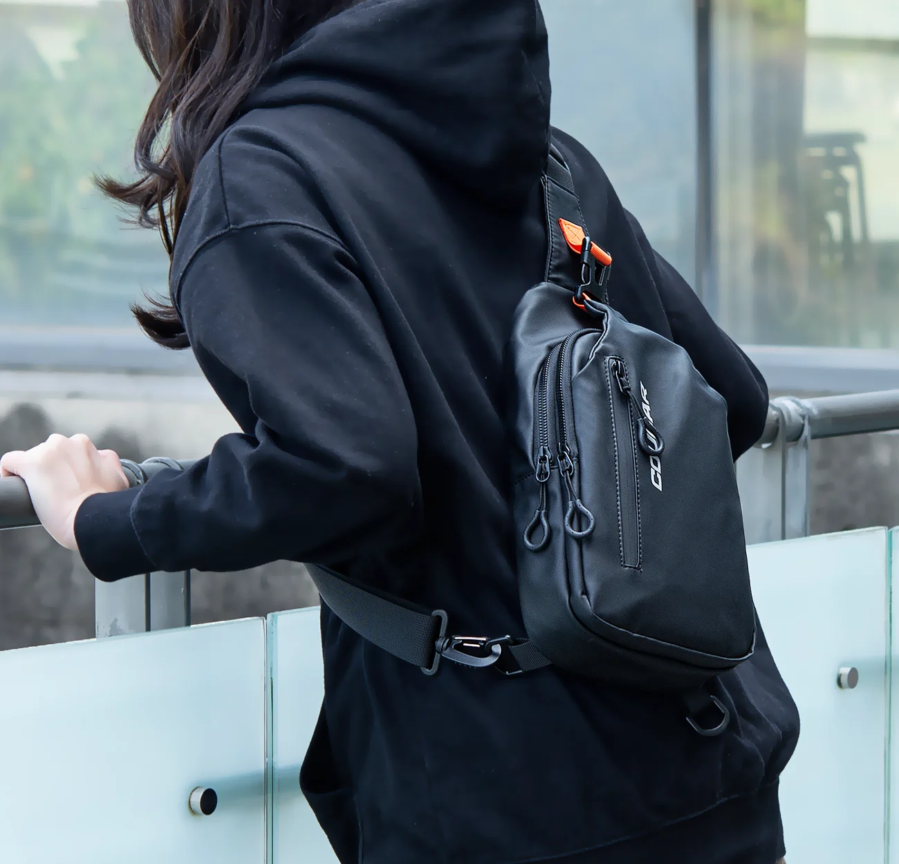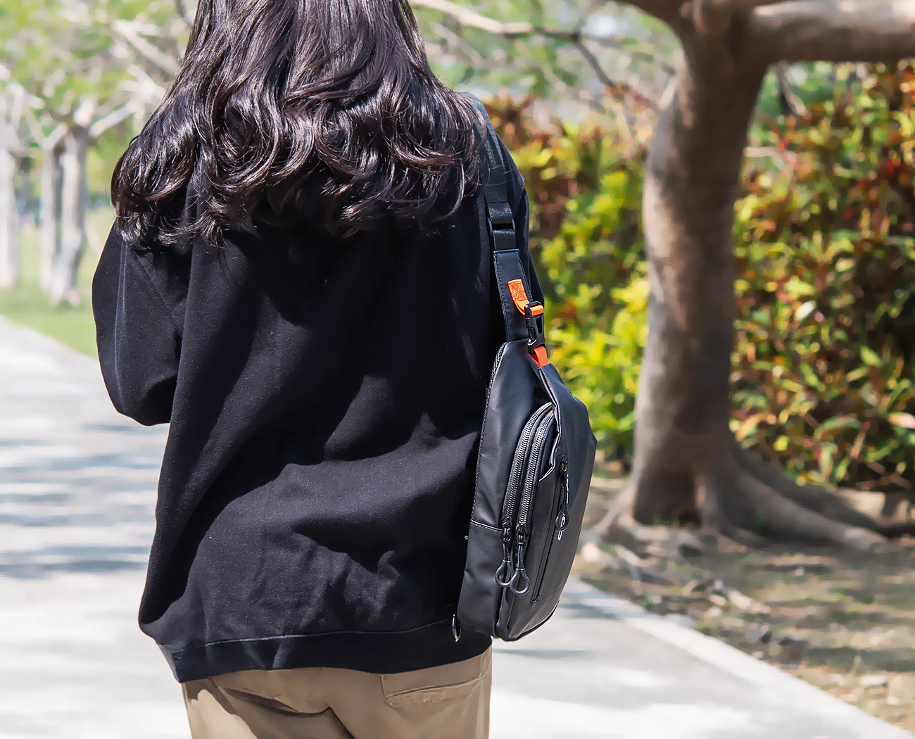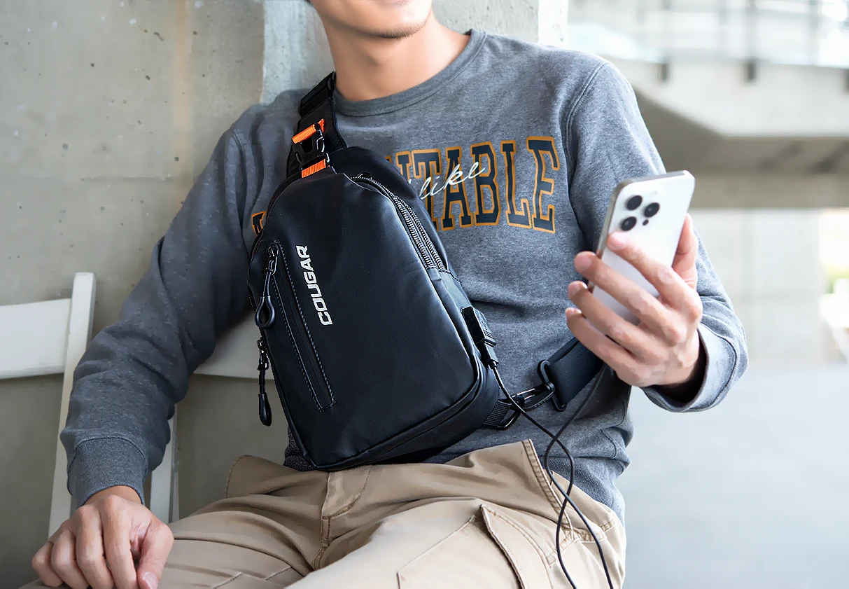 La correa para el hombro es ajustable en ambos extremos, lo que le permite personalizar la holgura según sus preferencias y puede colgarse sobre el hombro derecho o izquierdo.