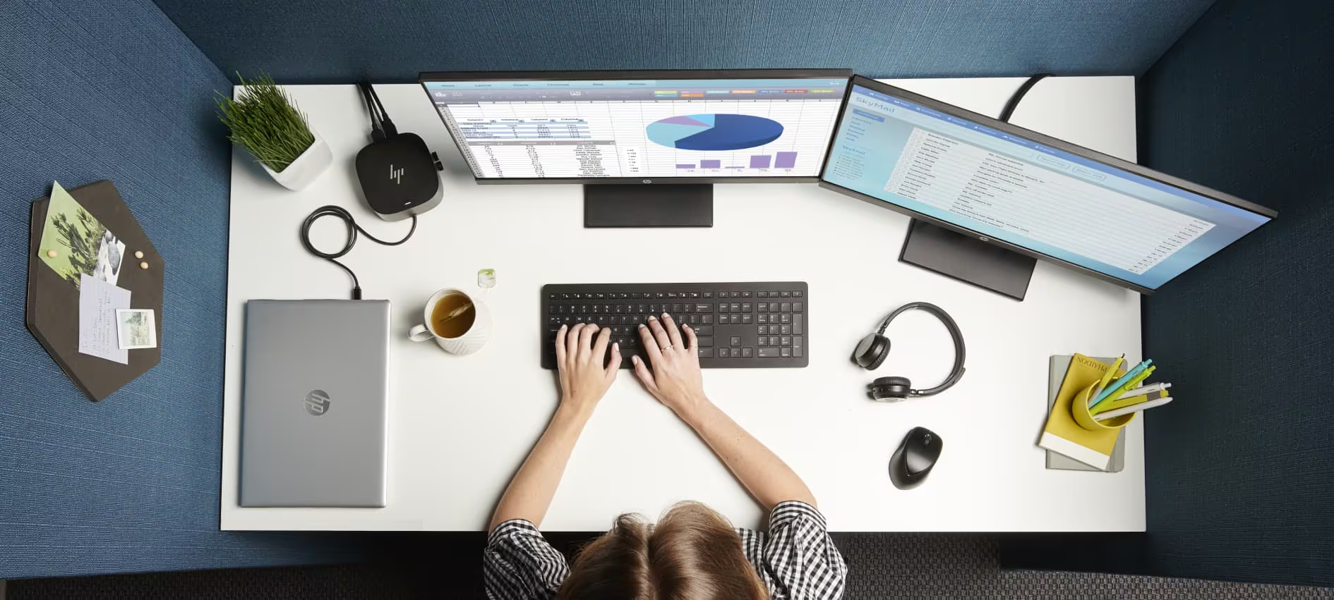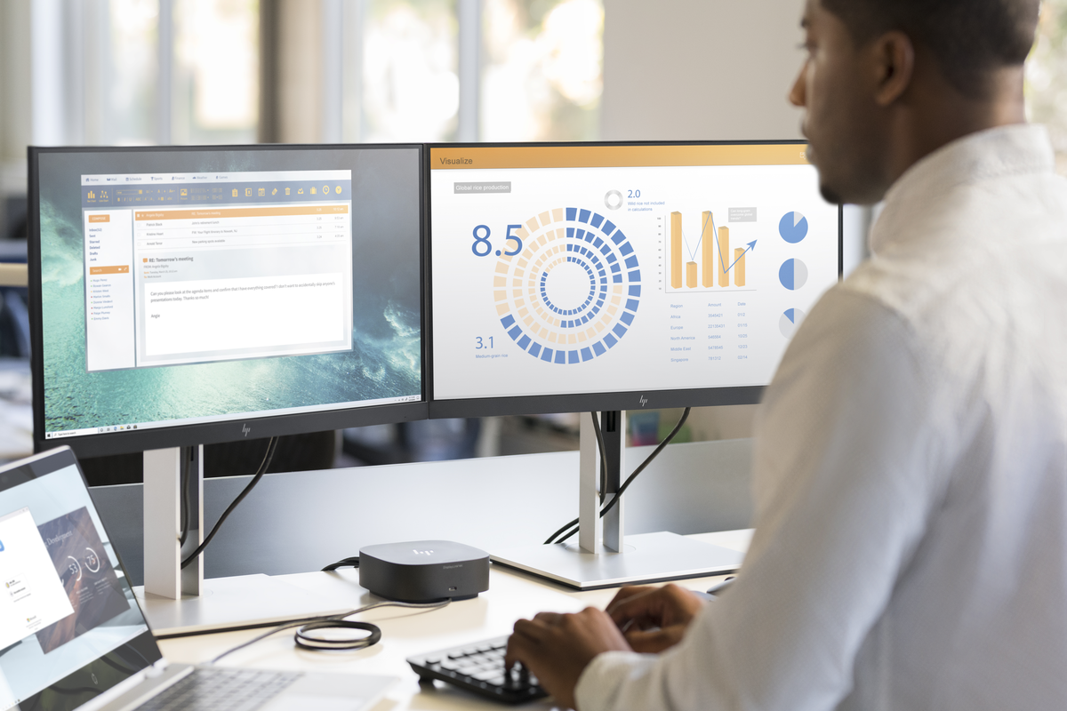 Una experiencia de escritorio completa a través de un solo cable, conecte su computadora portátil habilitada para USB-C® a sus pantallas, accesorios y red cableada con el HP USB-C® Dock G5 versátil, elegante y que ahorra espacio.