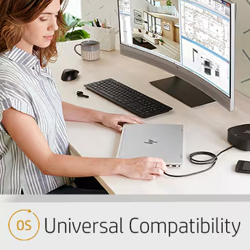 Diseñado con compatibilidad universal en mente, esta base funciona con computadoras portátiles HP y de otras marcas que tengan habilitado USB-C® y Thunderbolt™.