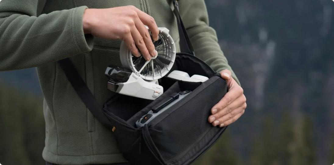 El DJI Flip es el primer dron DJI que cuenta con hélices que se pliegan junto con la cubierta.5 Cuenta con una estructura de soporte de fibra de carbono que es significativamente más liviana que los diseños estándar de PC (policarbonato) y al mismo tiempo mantiene la misma rigidez. ¡Esto proporciona al dispositivo una protección integral, por lo que incluso los pilotos novatos pueden volar sin preocupaciones! Además, el DJI Flip pesa menos de 249 g y cabe fácilmente en la mano. Así que será el compañero de viaje perfecto – ¡podrás llevarlo fácilmente contigo en vacaciones y más allá!
