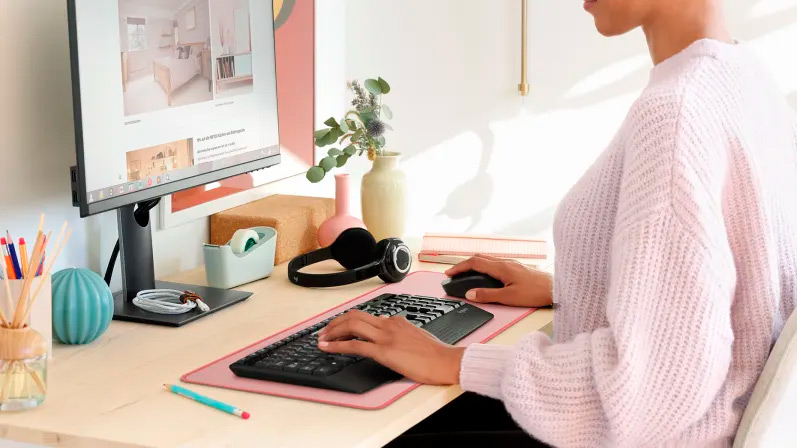 Escritura confortable y silenciosa en un teclado con una distribución habitual y tamaño normal, un amplio reposamanos, altura ajustable y fácil acceso a teclas multimedia como las de silenciamiento, volumen y reproducción. El teclado numérico es ideal para ingresar datos, realizar cálculos y navegar, para una mayor productividad, en casa o en la oficina.