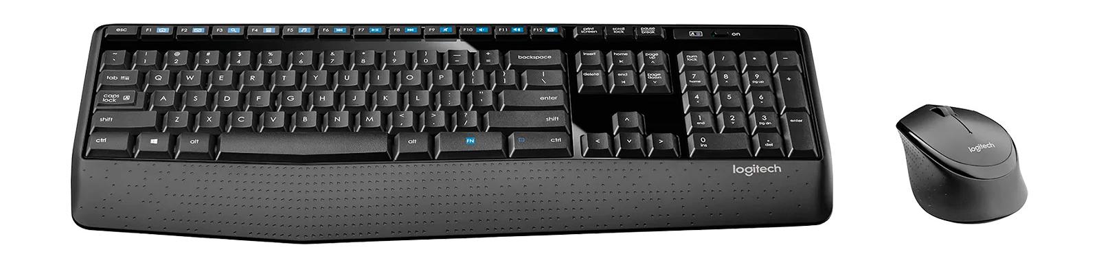 Te presentamos la combinación inalámbrica de tamaño normal con confort mejorado y baterías que duran meses. Un mouse contorneado para usar con la mano derecha y un teclado de tamaño normal con reposamanos incluido te permiten realizar todo tipo de tareas confortablemente durante toda la jornada.