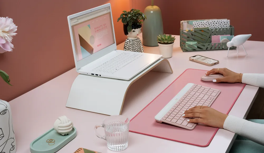 Un teclado discreto y un mouse sometido a pruebas de laboratorio que es un 90% menos ruidoso que otros. contribuyen a una experiencia de trabajo tranquila para ti y los que te rodean.