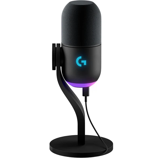 El micrófono Logitech Yeti GX USB negro combina calidad profesional y estilo con conexión USB, frecuencia de muestreo de 24 bits/96 kHz y respuesta de 60Hz a 18.5kHz, ideal para Windows y MacOS; además, incluye luces RGB personalizables y es compatible con soporte incluido o brazo articulado para máxima versatilidad.