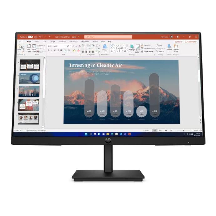 Este monitor está listo para conectarse y ofrecer visuales FHD nítidos4 con 1x VGA, 1x puerto HDMI 1.45y 1x DisplayPort™ 1.2.