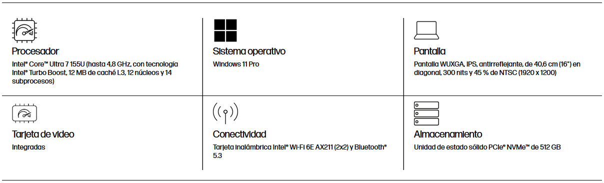 - Procesador Intel® Core™ Ultra 7 155U