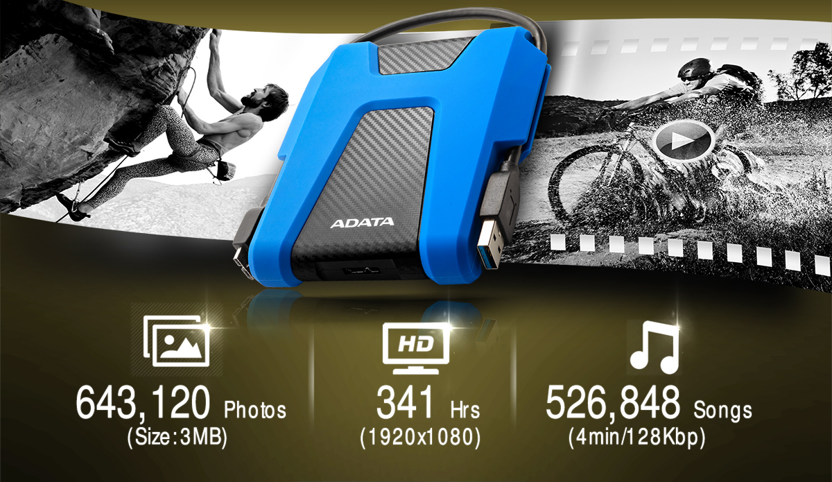 AHD680-2TU31-CBLCuando viaje con sus datos, querrá asegurarse de que estén bien protegidos contra golpes, caídas y miradas indiscretas. Con una robusta estructura en capas, sensores de impacto, ¡la unidad de disco duro ADATA HD680 le cubre todo!