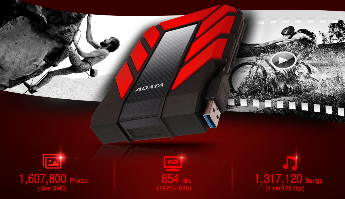 La experiencia de almacenamiento externo de ADATA da como resultado un disco con protección total contra el polvo y capacidad submarina para aguantar el agua. El HD710 Pro se prueba durante 60 minutos a 2 metros bajo agua - ¡eso supera los requisitos IEC IPX8! ¿Preparado para bucear?