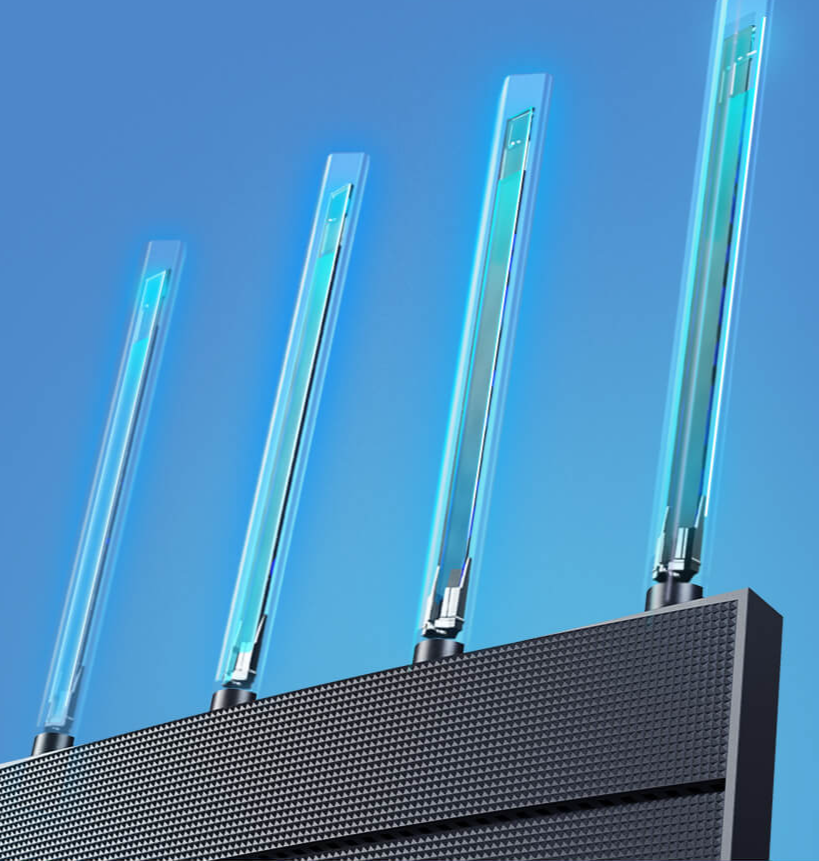 4 antenas externas de alto rendimiento mejoran las señales de Wi-Fi en toda tu casa. La tecnología Beamforming detecta los dispositivos y concentra la intensidad de la señal inalámbrica hacia ellos, especialmente para los enchufes que antes eran difíciles de alcanzar.