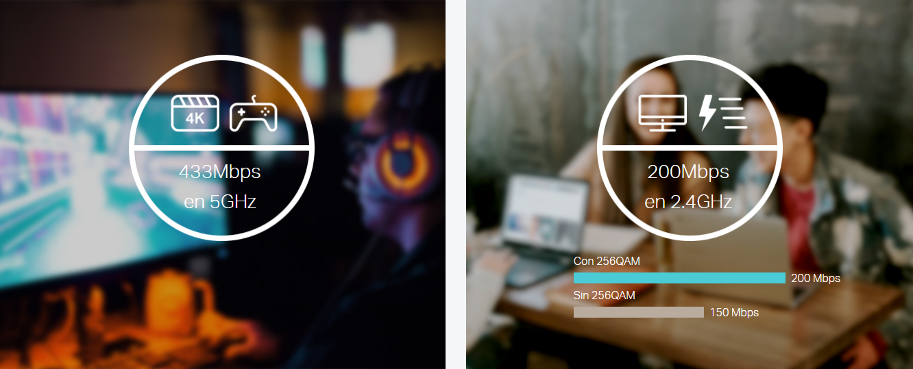 El ArcherT2U Plus recibe señales Wi-Fi en dos bandas separadas. 256QAM aumenta el ancho de banda de 2,4 GHz de 150 Mbps a 200 Mbps, rendimiento más rápido de 33%. Velocidades de 200 Mbps en la banda de 2,4 GHz es perfecto para un uso normal, tales como navegación web, 433 Mbps de velocidad en la banda de 5 GHz es ideal para streaming HD y juegos en línea sin lag.