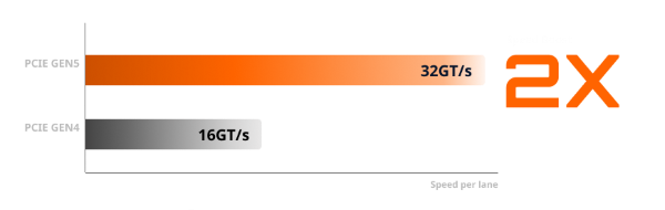 Las nuevas placas base GIGABYTE B760 ofrecen la solución más eficiente para disfrutar del rendimiento mejorado de PCIe Gen5 en la plataforma existente. PCIe 5.0 duplica la tasa de transferencia de datos de PCIe 4.0 de 16 GT/s a 32 GT/s por carril. Este aumento sustancial en el ancho de banda beneficia especialmente a las tarjetas gráficas de alto rendimiento, dispositivos de almacenamiento y aceleradores de IA que exigen un movimiento de datos más rápido.