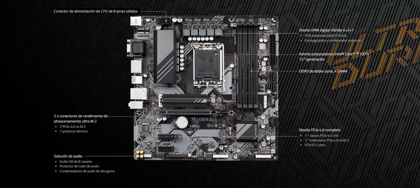 - Soporta 14th, 13th y 12th Gen Procesadores Intel® Core™, Pentium® Gold y Celeron