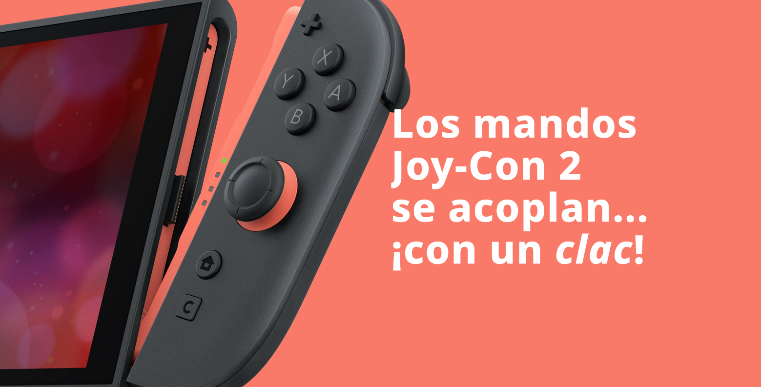 Acopla los nuevos mandos Joy-Con 2 a la consola con los conectores magnéticos. Incluso puedes usar ambos mandos a modo de ratón en juegos compatibles.