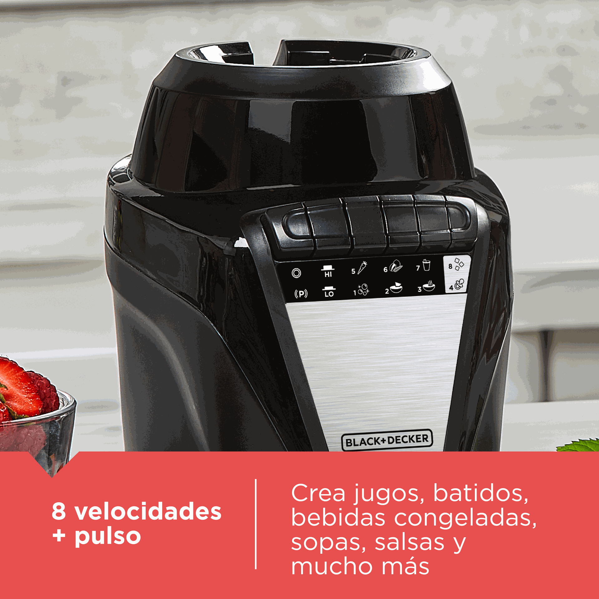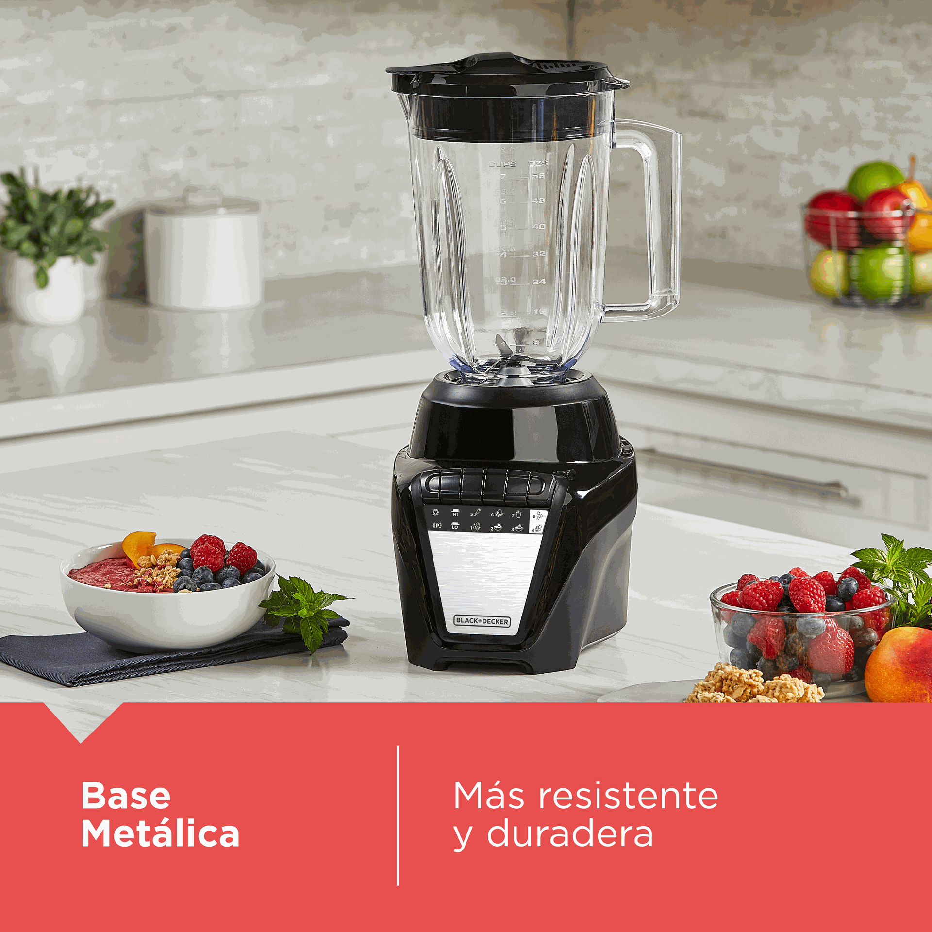 Potencia Imparable: 700W para mezclas perfectas, resaltando con un atractivo y moderno diseño negro. Durabilidad Excepcional: Construcción con acero inoxidable, ofreciendo resistencia y rendimiento incomparables. Control Maestro: 8 velocidades + pulso para obtener la textura exacta en cada preparación. Trituración Avanzada: 700W de potencia diseñados para triturar hielo y potenciar tus bebidas congeladas. Diseño Ergonómico: Jarra plástica de 1.65L para versatilidad y comodidad en cada uso. Innovación Práctica: Tapa de doble abertura para añadir ingredientes con facilidad y precisión. Creatividad Ilimitada: Cuchillas removibles para explorar sin límites en la cocina. Confianza Asegurada: 2 años de garantía limitada, brindando seguridad y respaldo a tu inversión. Adaptabilidad Universal: Funciona a 120 V, integrándose sin esfuerzo a tu rutina diaria. Estilo y Rendimiento Fusionados: La Licuadora BLACK+DECKER Negra es la declaración de estilo que tu cocina necesita.