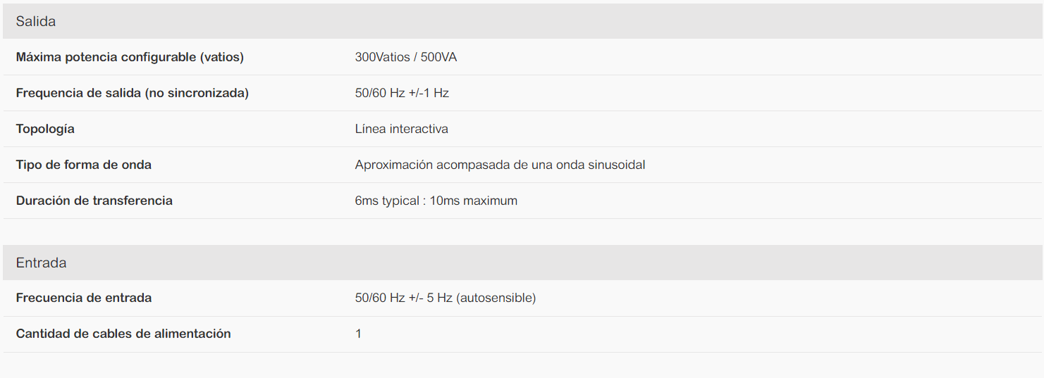 - Conexiones de salida: (6) NEMA 5-15 (Respaldo de batería)