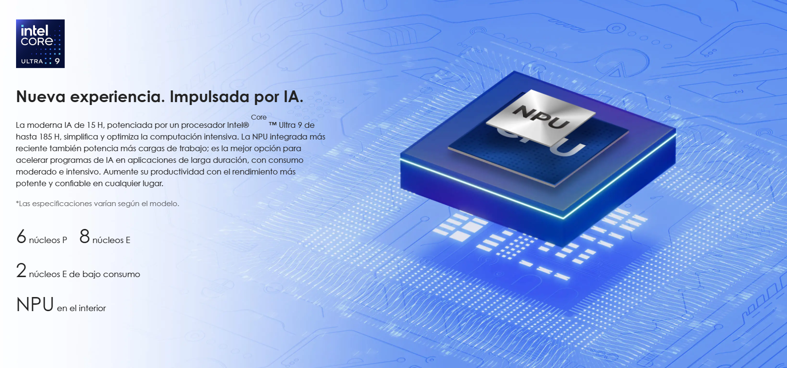 - Procesador Intel Core Ultra 9 185H 2.3GHz