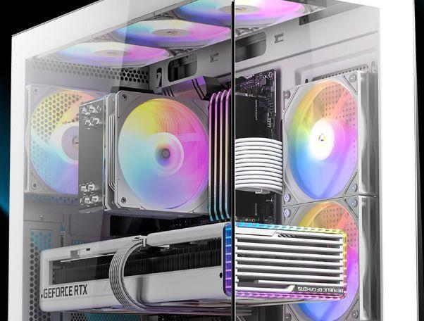 - Incluye 3 ventiladores ARGB PWM de 120 mm preinstalados (2 laterales reversos, 1 trasero)