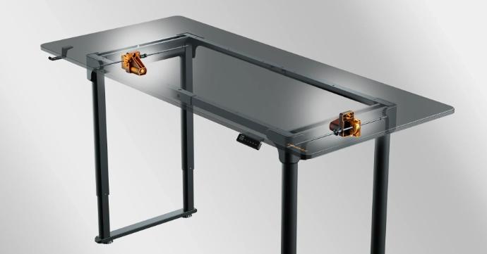 La robusta estructura con cuatro patas redondas en formación cuádruple brinda firmeza y durabilidad. Sus motores duales distribuyen el peso de manera uniforme, permitiendo ajustes de altura más equilibrados.