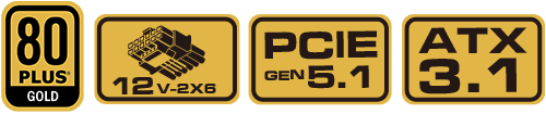 Diseñada para soportar sistemas de última generación, la serie COUGAR GES cumple con el estándar ATX 3.1. Con un diseño nativo 12V-2X6, proporciona alimentación a las tarjetas gráficas de última generación a través de un único cable de 12+4 pines. Con calificación de eficiencia 80 PLUS Gold, ofrece estabilidad, durabilidad y fiabilidad de alta calidad.