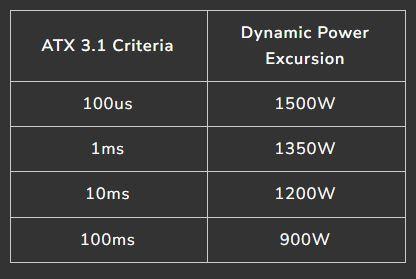 La serie COUGAR GES superó las cuatro estrictas pruebas de excursión de potencia de la Guía ATX 3.1 de fuentes de alimentación, en las que el pico de consumo de energía debe soportar hasta el 200% de la potencia nominal durante 100μs