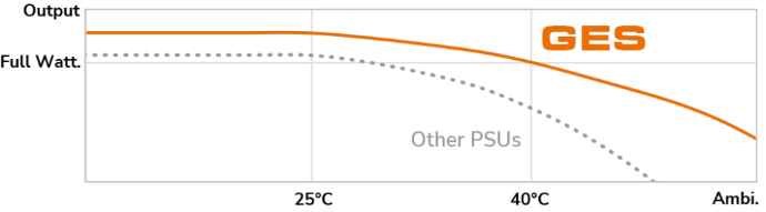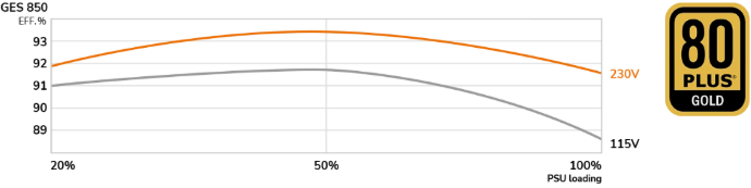La serie GES cuenta con un diseño altamente eficiente que supera el estándar 80 PLUS Gold, con el fin de reducir el consumo de electricidad.