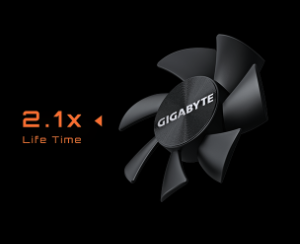 El sistema de refrigeración diseñado a medida de GIGABYTE garantiza una disipación eficiente del calor, con gel termoconductor de calidad servidor, una placa de cobre con contacto directo con GPU y tubos de calor compuestos de cobre. Estos elementos facilitan una mejor transferencia de calor al disipador, lo que permite un mayor rendimiento a temperaturas más bajas.