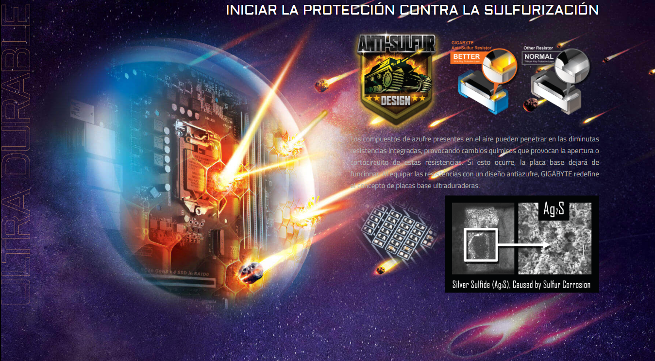Las placas base GIGABYTE utilizan condensadores de audio de alta gama. Estos condensadores de alta calidad ayudan a ofrecer audio de alta resolución y fidelidad para ofrecer los efectos de sonido más realistas para los jugadores.