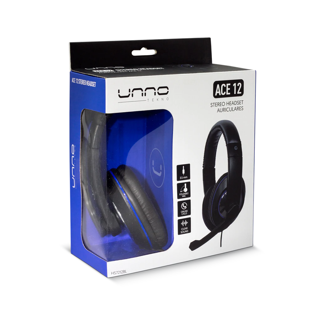 Con los Audífonos Tipo Headset UnnoTekno 3.5mm Ace12 con Micrófono Negro, disfruta de un audio claro y potente, perfecto para el día a día, ya sea en el trabajo, en juegos o en llamadas importantes.