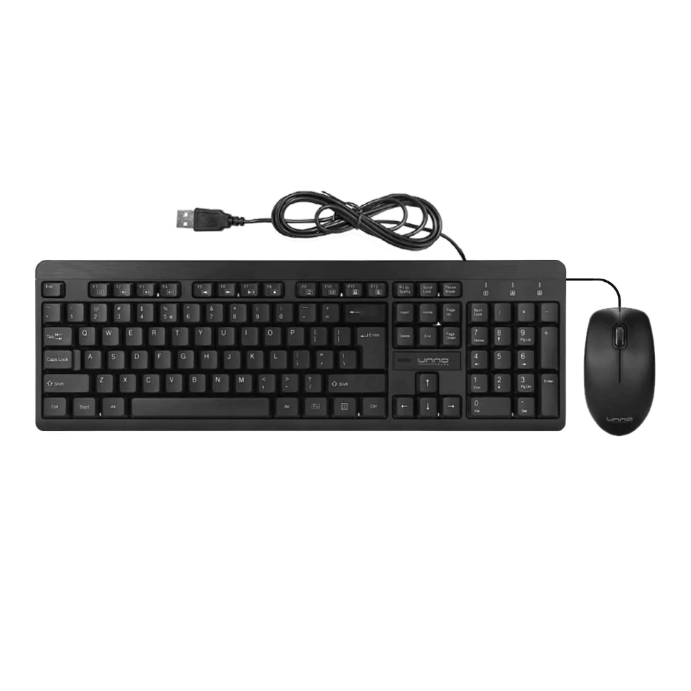 Teclado y Mouse Alámbrico Unno Tekno Klass USB Ingles Negro