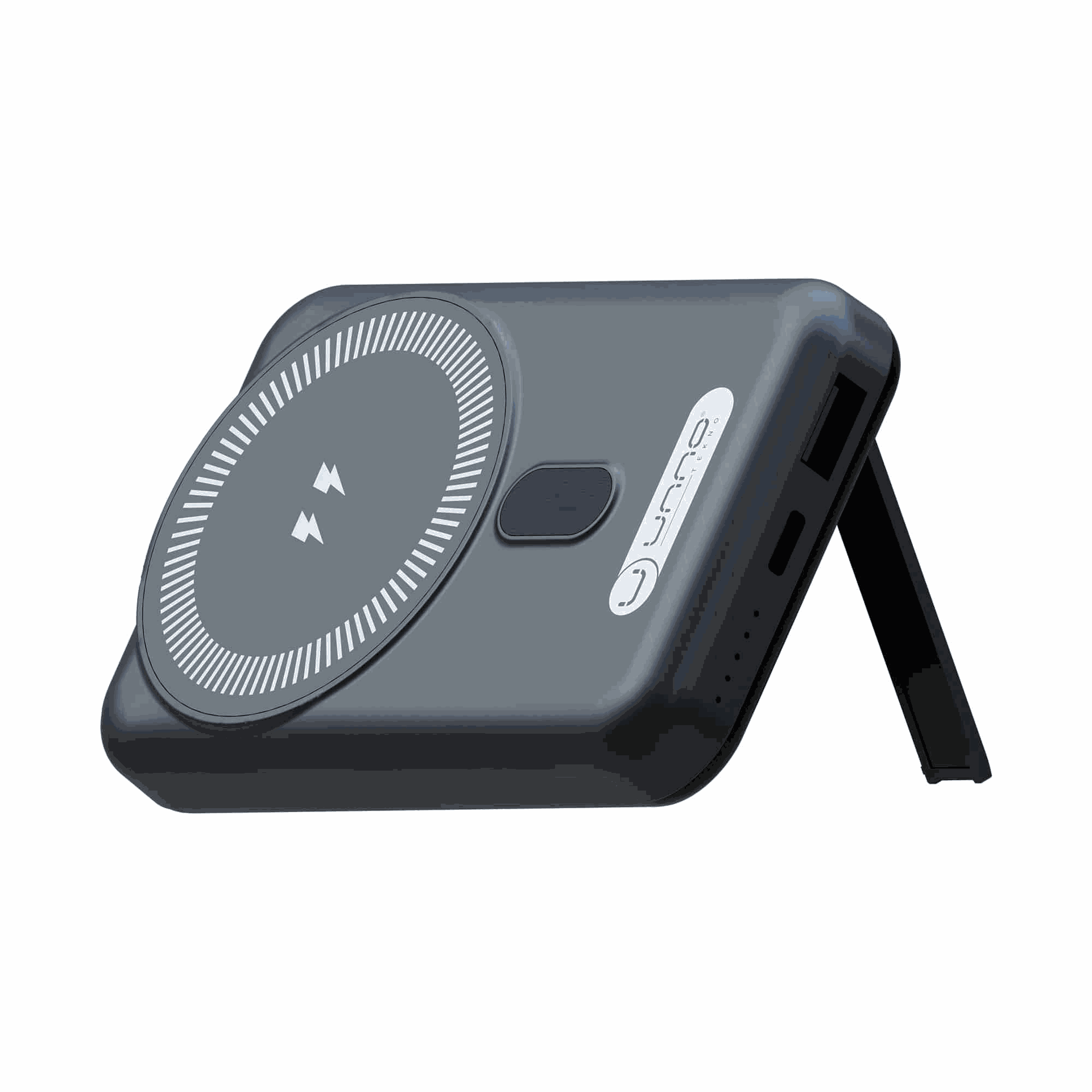 Está diseñado con un circuito de carga inteligente que ofrece protección contra sobrecarga, sobrecalentamiento y cortocircuito. Posee un fuerte agarre magnético, un indicador de nivel de batería y un soporte integrado para facilitar su uso. Su diseño compacto y elegante lo hace fácil de transportar, y el cable USB C está incluido.