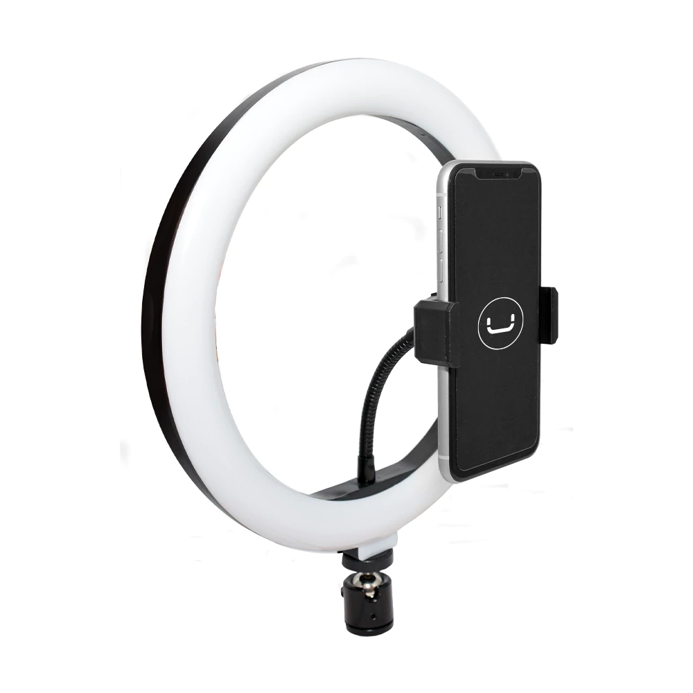 Tu talento y nuestro kit de luz anular LED de 10″ es todo lo que necesitas para grabar vídeos y fotos de calidad profesional.